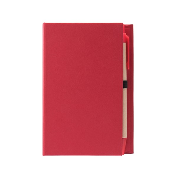 Dieser praktische Notizblock aus recycelten Papier, personalisiert mit Ihrem Firmenlogo oder Ihrer Werbebotschaft, bietet dem Beschenkten alles, was er braucht, um wichtige Informationen schnell und einfach notieren zu können. Das Set besteht aus einem 70-seitigen weißen Blanko-Notizblock, einem gelben Haftnotizblock, neonfarbenen Markierstreifen und einem passenden Papier-Kugelschreiber, der mit einer elastischen Gummischlaufe sicher am Umschlag befestigt ist. Dieses Werbegeschenk ist in vielen verschiedenen Farben verfügbar. Sicherlich ist auch die passende entsprechend Ihrer Unternehmensfarbe dabei. Einen Notizblock zur Hand zu haben, um alles Wichtige festzuhalten, reduziert die Bildschirmzeit, schont die Augen und gönnt dem Gehirn eine Auszeit von der Informationsflut, der wir jeden Tag ausgesetzt sind. Unser Tipp: Einfach mal abschalten! Dank des kompakten Designs ist dieser Recycling-Notizblock mit Ihrem mehrfarbigen Logo ideal für das Büro oder Homeoffice und passt auch in die Tasche, sollte man mal unterwegs sein. Ihre individuelle Werbebotschaft ist somit tagtäglich im Blick Ihrer Kunden, Mitarbeiter und Geschäftspartner. Schreiben, organisieren & gewinnen Sie mit diesem personalisierten Werbegeschenk!