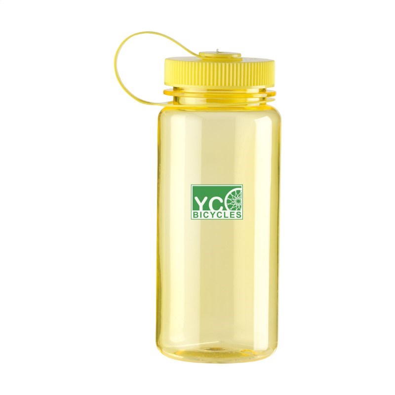 Transparantgekleurde, BPA vrije, AS waterfles met schroefdop en royale drinkopening. Gemakkelijk te reinigen en lekvrij. Inhoud 650 ml.