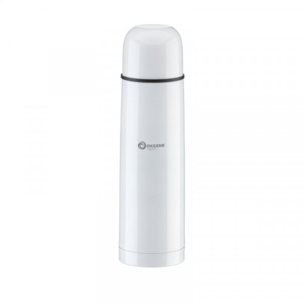 RVS thermosfles met schroefdop/drinkbeker en handig schenksysteem met druksluiting. Inhoud 500 ml. Per stuk in doos.